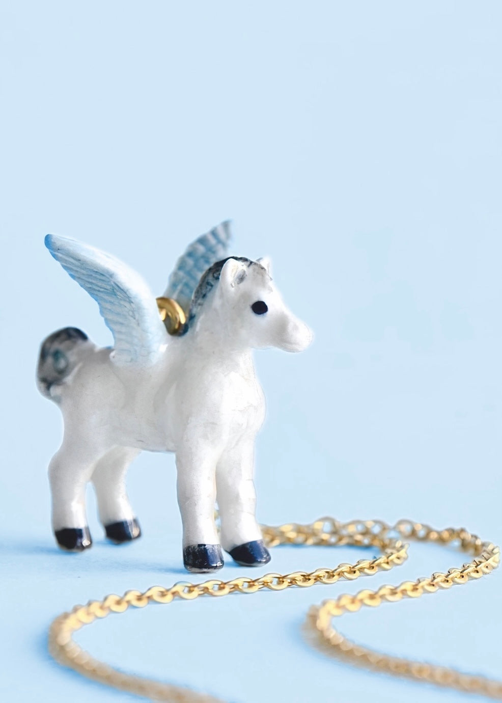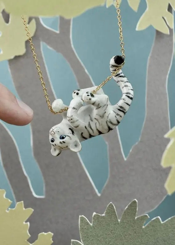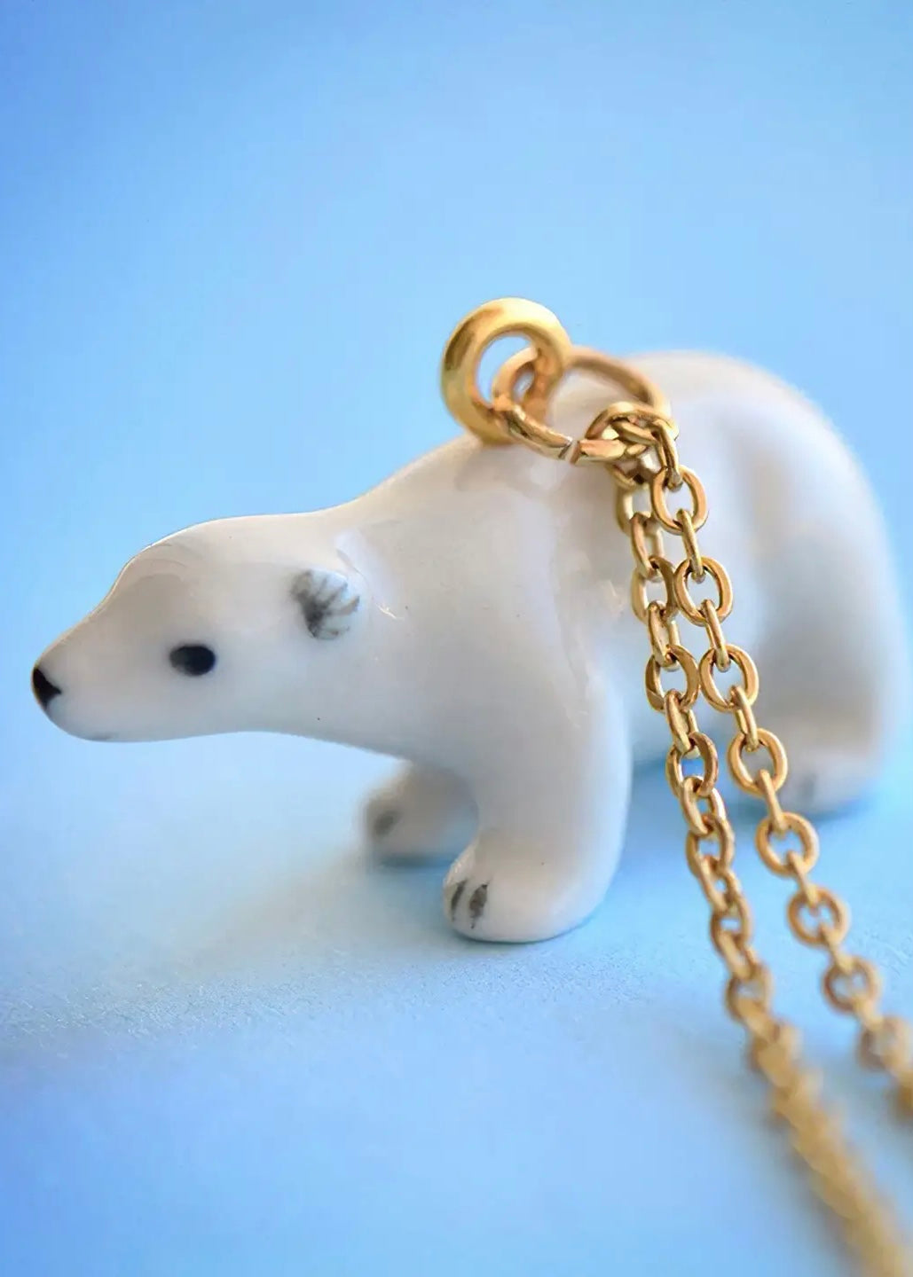 This handcrafted porcelain pendant is strung on a golden chain, this necklace is a versatile and captivating addition to any ensemble. Due to the handmade nature of this product, slight variations in color and design may occur, making each piece truly one-of-a-kind.