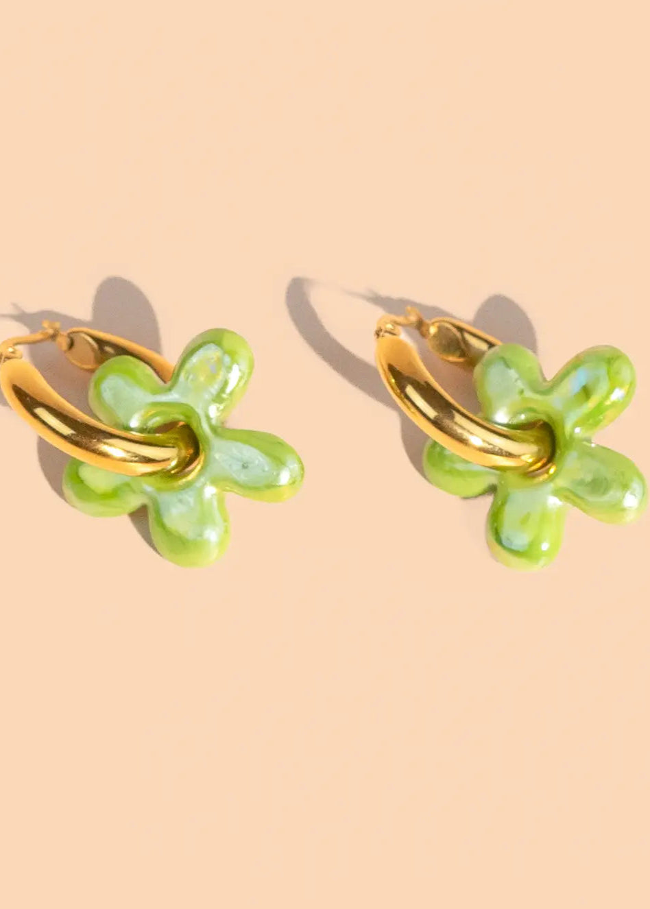 Add a pop of charm with the Dazy Dew Drop Hoop’s hand-made Murano flowers. Lightweight, dreamy, and perfect for twirling through the day.