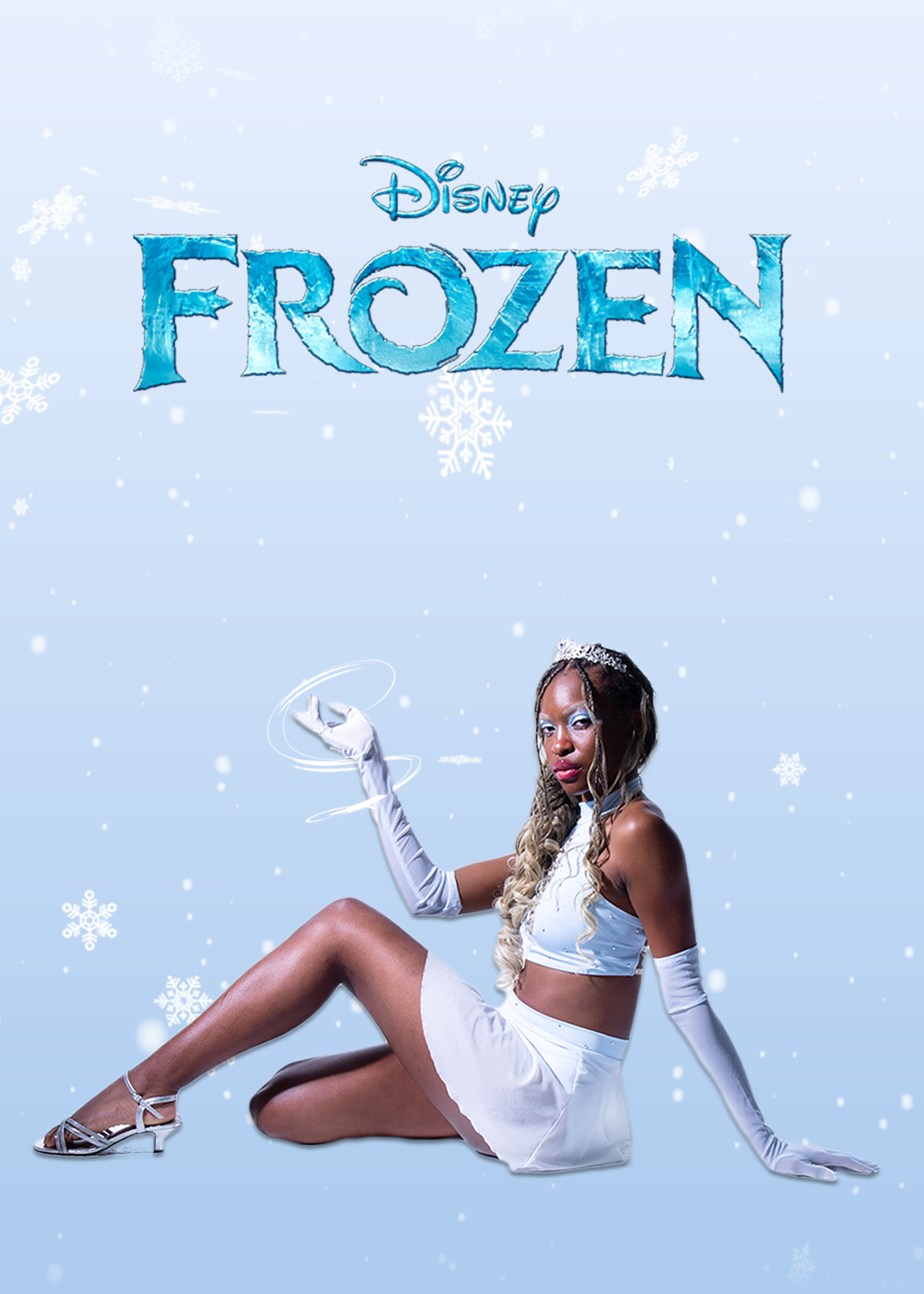 Bring the chill with this icy white two-piece look, perfect for channeling your inner Elsa or taking on Halloween as a frosty goddess. Featuring a sparkling crop top, flouncy skirt, and long satin gloves, this costume is equal parts glamorous and dramatic.
