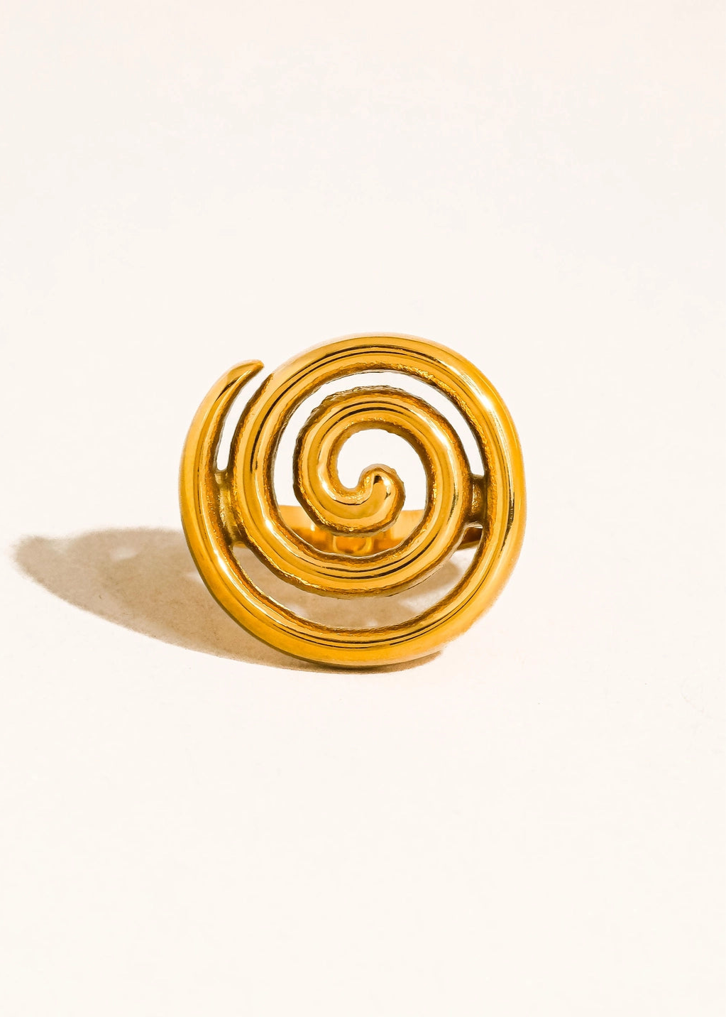 A bold spiral design that feels both ancient and modern, the Orlisse Spiral Statement Ring is a true conversation piece. Hand-crafted with a radiant gold finish, it symbolizes cycles, growth, and infinite style. Made with durable, non-tarnish materials, this ring will keep its shine wear after wear.